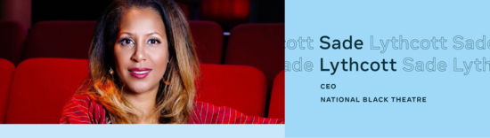 Harlem native Sade Lythcott is the Chief Executive Officer of the historic National Black Theatre, the nation’s first revenue generating Black Arts complex and the longest run theater by a woman of color. Sade is the daughter of the late Dr. Barbara Ann Teer, founder of NBT and legendary champion of African-American arts and culture. Sade currently serves as the chair of the Coalition of Theaters of Color, an alliance of 42 theaters across New York City; founded by Ossie Davis and Ruby Dee in 2004 to combat the systemic inequities in the field and to ensure that theaters of color are funded equitably. Most recently Sade is leading the New York City’s Cultural Institution Group (CIG) re-opening working group, helping New York’s cultural sector in all five boroughs navigate reopening post COVID-19 statewide quarantine. Lythcott also proudly sits on the national board of advisors for Art in a Changing America.