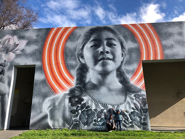 For someone who grew up really admiring street culture scenes, it’s still something I feel greatly appreciative of. The reason really was wanting to further expand what we were doing inside the gallery, to take a little bit of it outdoors. For years, we had a space and for a long time people didn’t know it was a hub for people who made the space what it was. The decision was to continue exposing people of San Jose to what we were doing inside the space. We just happened to be in Japantown, and that’s where we were able to start contributing to and doing public art. I think for me, it’s always been about spreading our art throughout the city and being able to immerse myself in the city I grew up in.