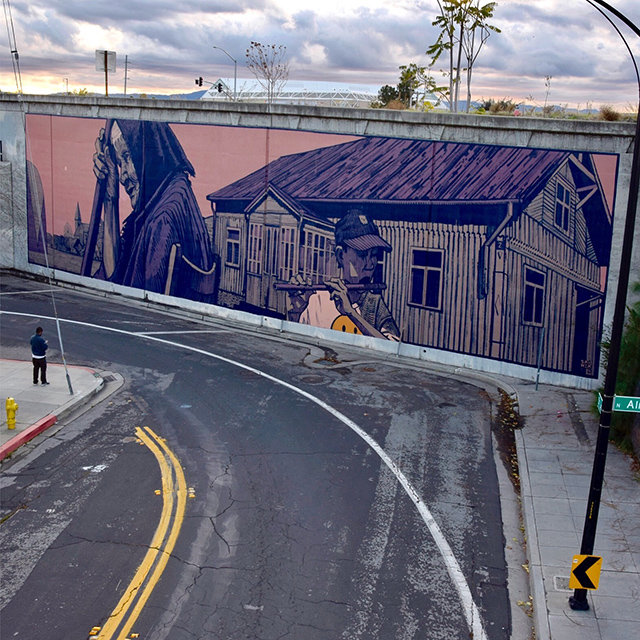 Como alguien que creció admirando las escenas de cultura de la calle, es algo por lo que me siento muy agradecido. La razón de deveras era que quería desarrollar lo que estábamos haciendo dentro de la galería, y hacer un poco de eso al aire libre. Por años, teníamos un espacio y por mucho tiempo, la gente no sabía que era un centro para los que hicieron ese espacio. La decisión fue continuar exponiendo a la gente de San José a lo que estábamos haciendo dentro de nuestro espacio. Simplemente resultó que estamos localizados en Japantown, y allí fue donde pudimos contribuir y hacer arte público. Pienso que para mi, siempre ha sido sobre untando el arte por la ciudad y siendo capaz de hundirme en la ciudad donde yo crecí.